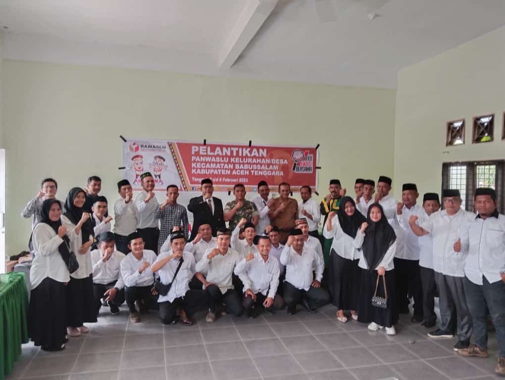 Aceh Tenggara - Badan pengawas pemilihan umum (Bawaslu) Aceh Tenggara melalui Panwascam Babussalam melantik 27 petugas Pengawas Pemilu Desa/Kelurahan (PKD). Usai dilantik, mereka juga mendapatkan pembekalan tentang pengawasan Pemilu.