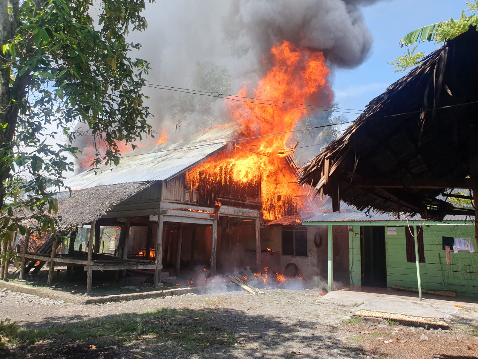 Foto: Dok, BPBD PidiePidie - Tiga rumah warga di Gampong Paloh Raya, Kecamatan Mutiara Timur, Pidie, terbakar, Jumat (9/6). Belum diketahui penyebab di balik peristiwa tersebut. Dugaan sementara api berasal dari korsleting listrik dari salah satu rumah hingga merembet ke rumah lainnya.