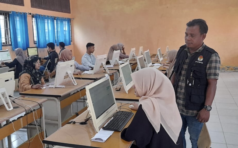 Blangpidie - Sebanyak 447 Peserta Calon Anggota Panitia Pemilihan Kecamatan (PPK) yang lolos tahap seleksi administrasi mengikuti ujian tertulis dengan menggunakan Computer Assisted Test (CAT), yang diselenggarakan Komisi Independen Pemilihan (KIP) Aceh Barat Daya (Abdya) di SMK Negeri 1 Abdya.