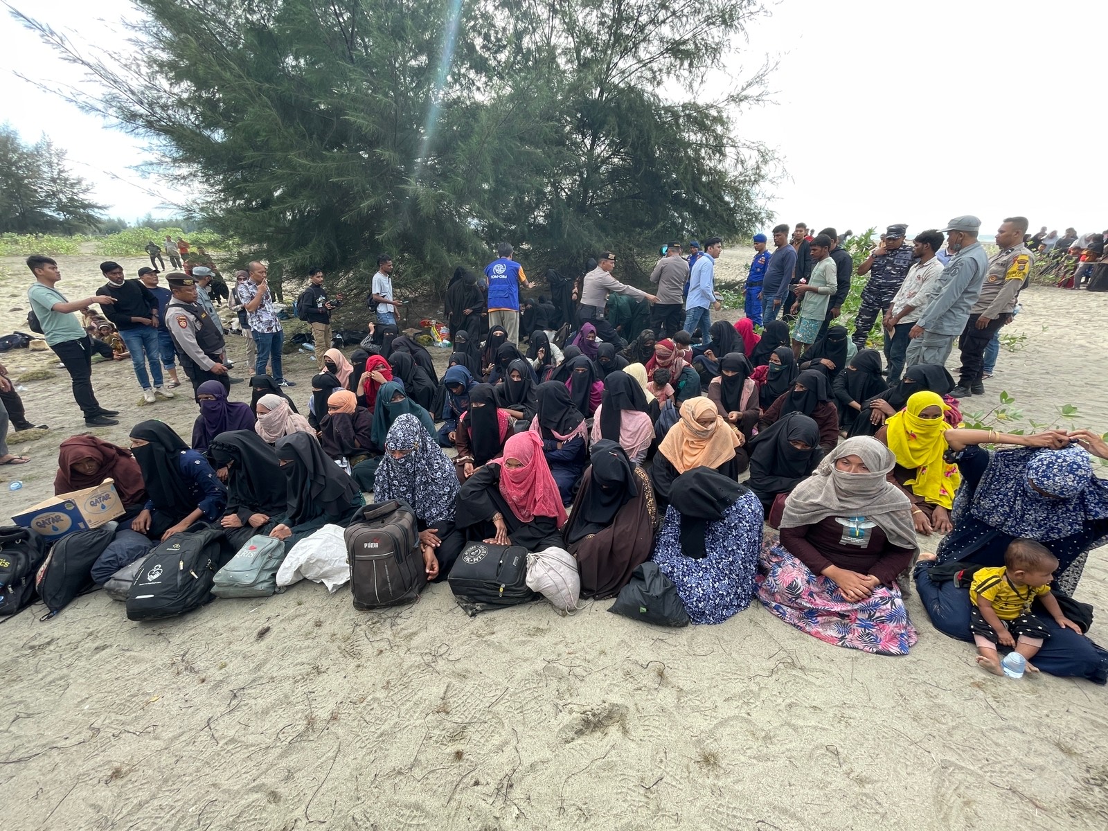 Foto: IskandarAceh Besar – Sebanyak 184 imigran Rohingya kembali terdampar di pantai Gampong Baro, Kecamatan Masjid Raya, Aceh Besar. Dari jumlah itu, terdapat seorang wanita dalam kondisi hamil.