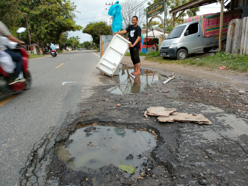 "Kita berharap pemerintah cepat melakukan perbaikan jalan berlubang tersebut dengan serius dengan permanen,"pungkasnya.