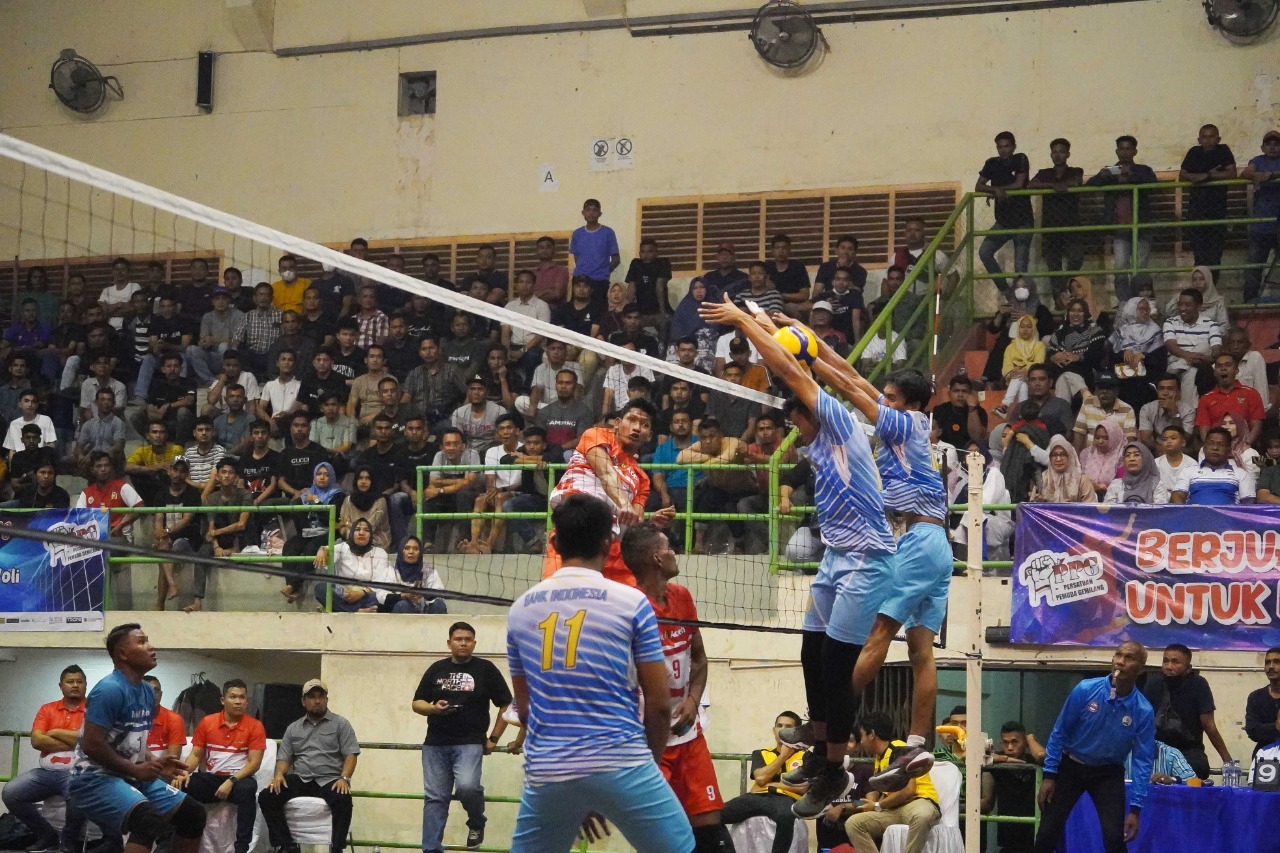 Foto: Dok, istimewaBanda Aceh - Tim Voli Bank Aceh Syariah (BAS) keluar sebagai pemenang dalam final Gemilang Cup I 2022 menghadapi Bank Indonesia (BI) Aceh. Bank Aceh membawa pulang Piala Bergilir Aminullah Usman dengan kemenangan 3-0 (17-25, 22-25, 22-25) di GOR KONI Aceh, Sabtu (24/12) malam.