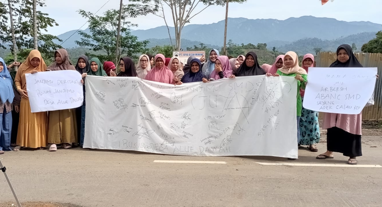 Blangpidie - Belasan ibu-ibu dari Gampong Alue Dawah, Kecamatan Babahrot, Kabupaten Aceh Barat Daya (Abdya) menggelar aksi unjuk rasa di PT Sinar Mentari Dwiguna (SDM) di Desa Ie Mirah, kabupaten setempat, Selasa (17/1).