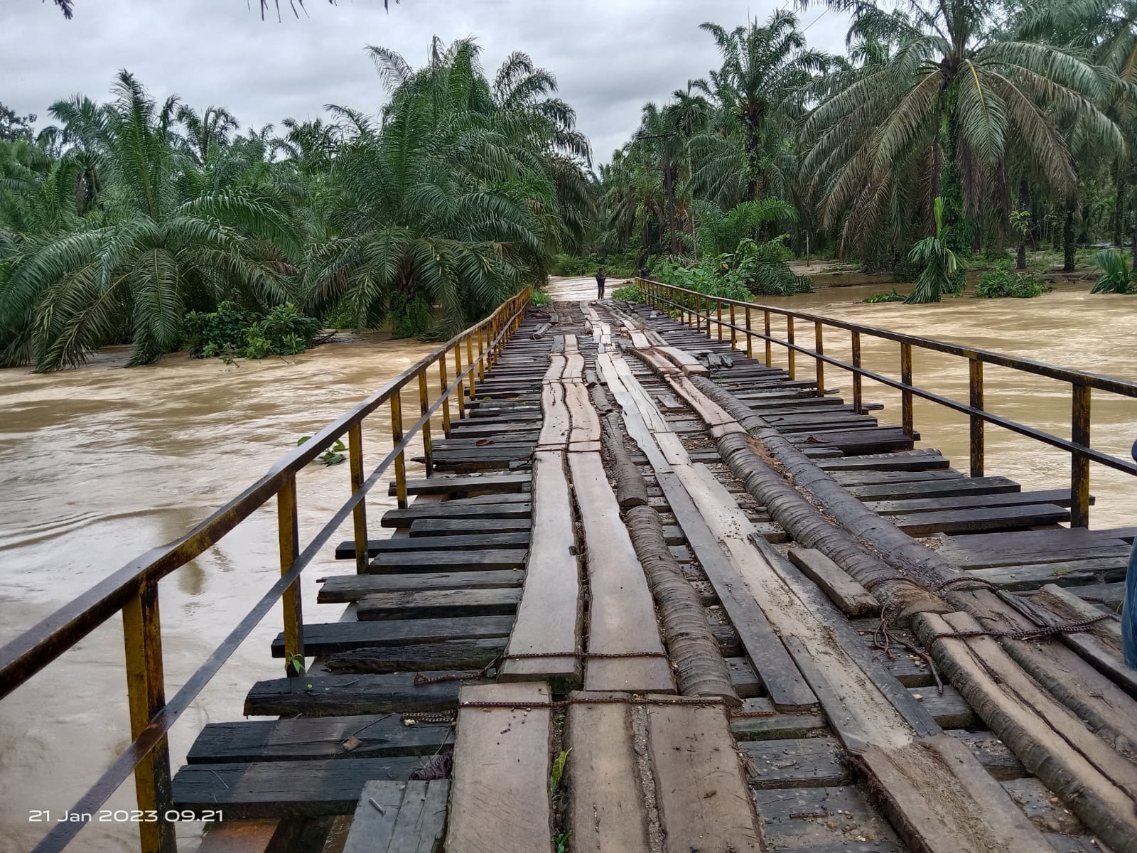 Aceh Tamiang - Hujan deras yang melanda wilayah Kabupaten Aceh Tamiang sejak Jumat (21/1) malam, sehingga mengakibatkan peningkatan debit air Sungai Tamiang.