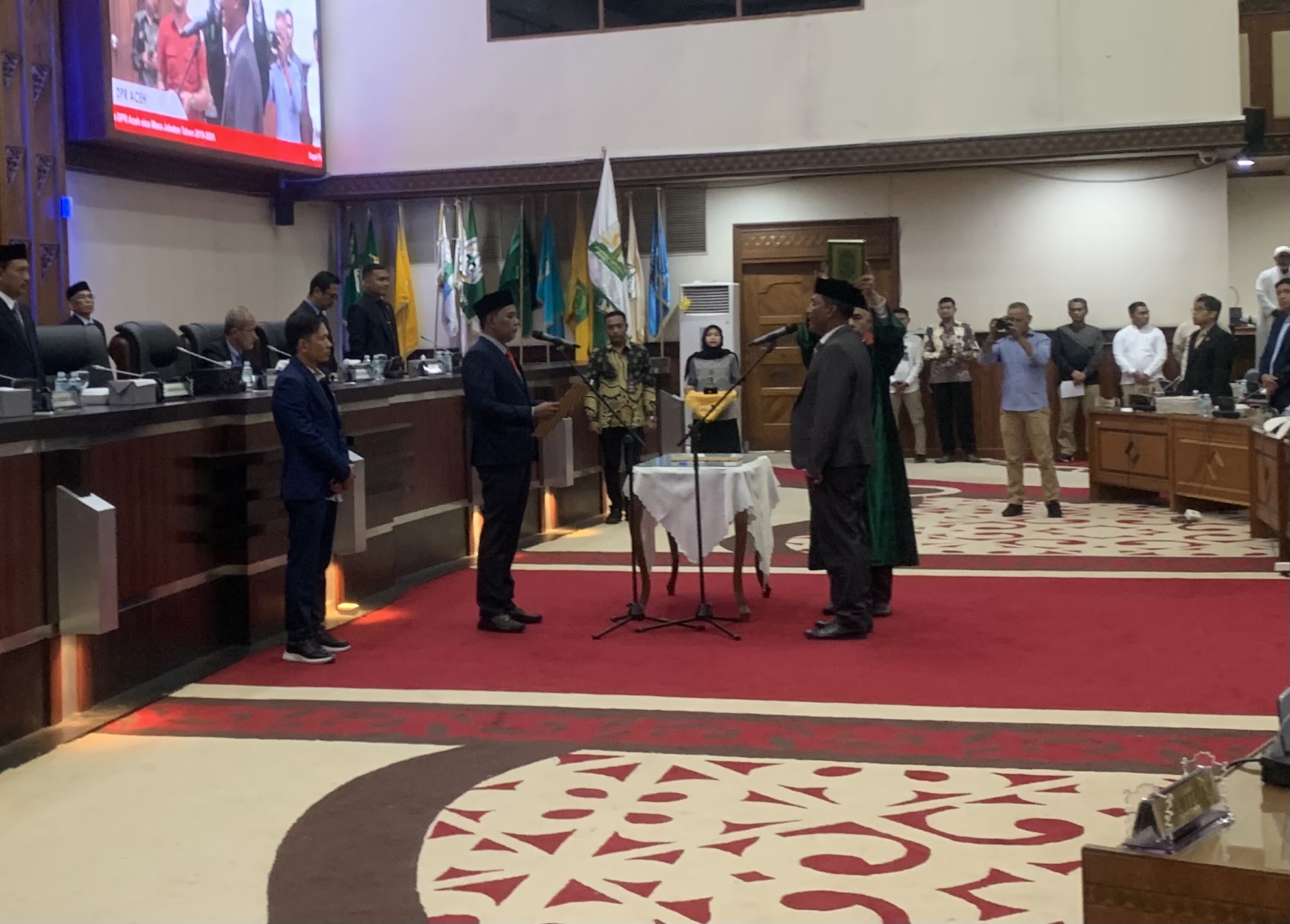 Pantauan HabaAceh.id, pengambilan sumpah jabatan terhadap Edy Assaruddin dipandu langsung oleh Ketua Ketua DPR Aceh, Saiful Bahri.