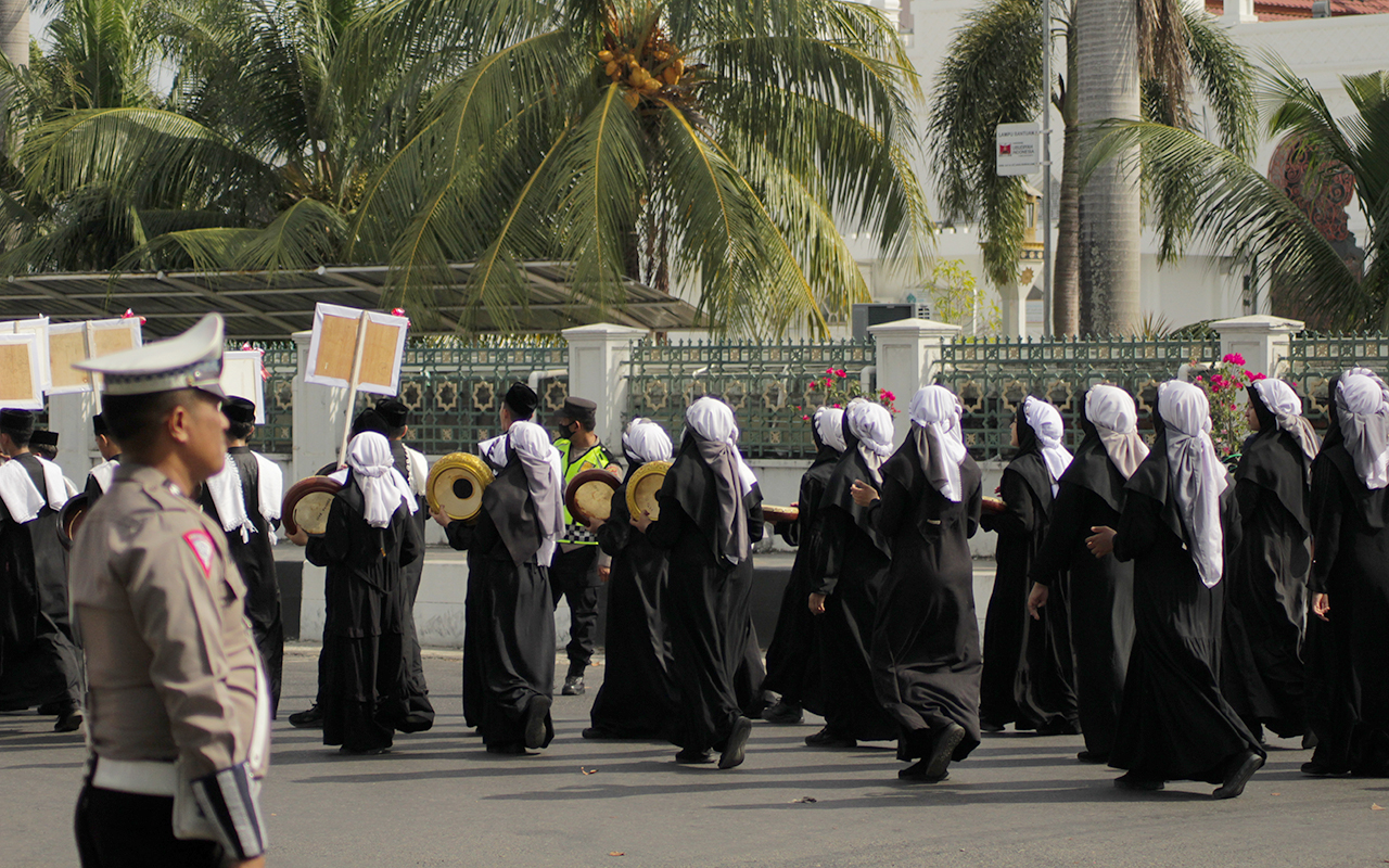 Setelah enam tahun vakum pasca Covid-19 membekukan aktivitas sebagian besar masyarakat, kini pawai 1 Muharram digelar dengan meriah. Peserta mulai berjalan dari lapangan Blang Padang menuju Pendopo Gubernur Aceh, berbelok ke Simpang Kodim, lurus ke Masjid Raya Baiturrahman dan berakhir di Blang Padang.