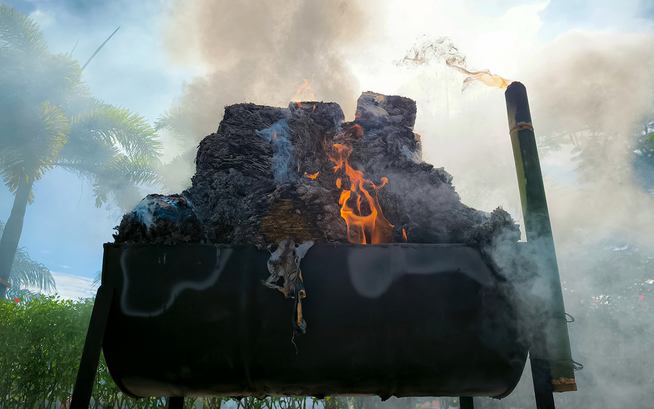 Pemusnahan ganja dilakukan dengan cara dibakar, sementara sabu dilarutkan dalam air mendidih yang dicampur dengan air raksa, cairan pembersih toilet dan bahan kimia lainnya agar tidak bisa digunakan lagi.