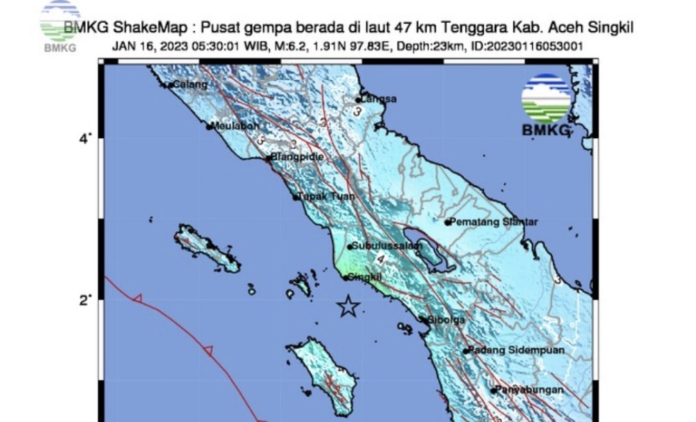 Gempa Magnitudo 6.2 Gundang Aceh Singkil, Tak Berpotensi TsunamiFoto : Dok. Istimewa