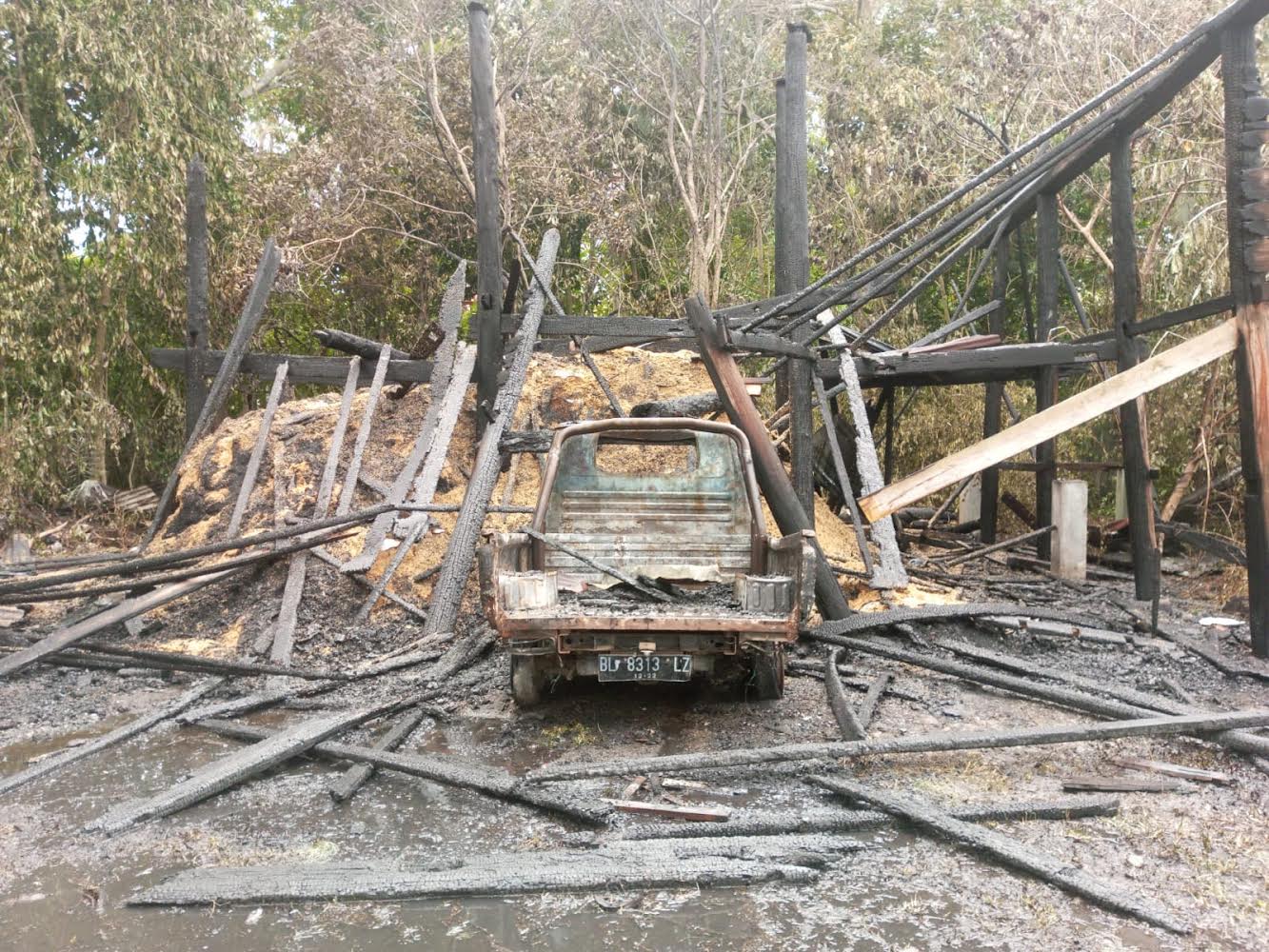 Aceh Besar – Sebuah gudang penyimpanan sekam padi di Gampong Lamsie, Kecamatan Kuta Cot Glie, Aceh Besar, ludes terbakar. Satu unit mobil yang berada di gudang tersebut juga hangus dilahap si jago merah.