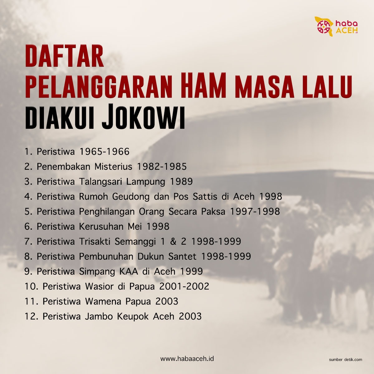 Secara nasional pengakuan negara terhadap pelanggaran Hak Asasi Manusia (HAM) berat masa lalu oleh Presiden Joko Widodo, Rabu 11 Januari 2023 dari Istana Kepresidenan, merupakan salah satu informasi yang direspons banyak pihak terutama para aktivis HAM di seantero negeri.