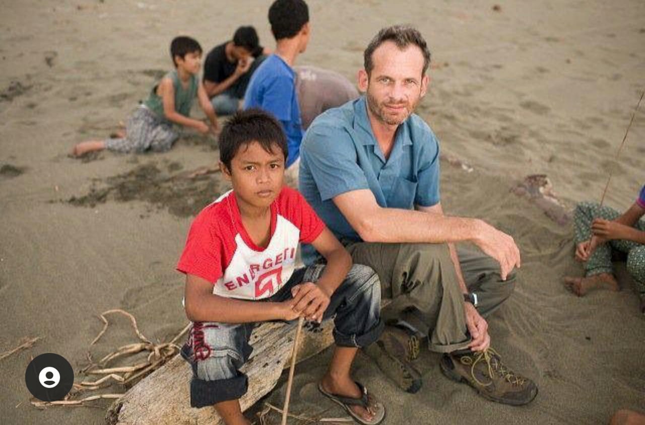 Roza Novinadi duduk bersama Mr.James Robert dua tahun setelah tsunami