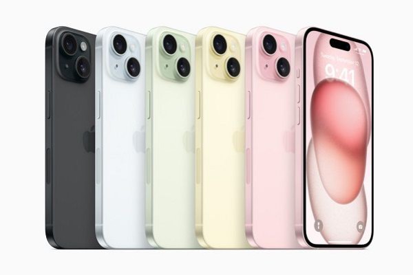 iPhone 15 atau iPhone 15 Plus didominasi warna pastel. Ada hitam, biru, hijau, kuning, dan merah muda. Seri ini menggunakan alumium dengan pelindung keramik di bagian depan dan kaca di bagian belakangnya.
