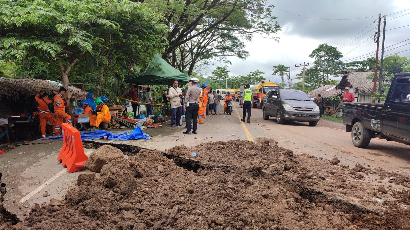 Dia mengatakan, jalan ambles sebenarnya sudah terjadi sejak beberapa hari lalu. Namun, kondisi longsor semakin bertambah hingga badan jalan di lokasi itu hampir terputus total.