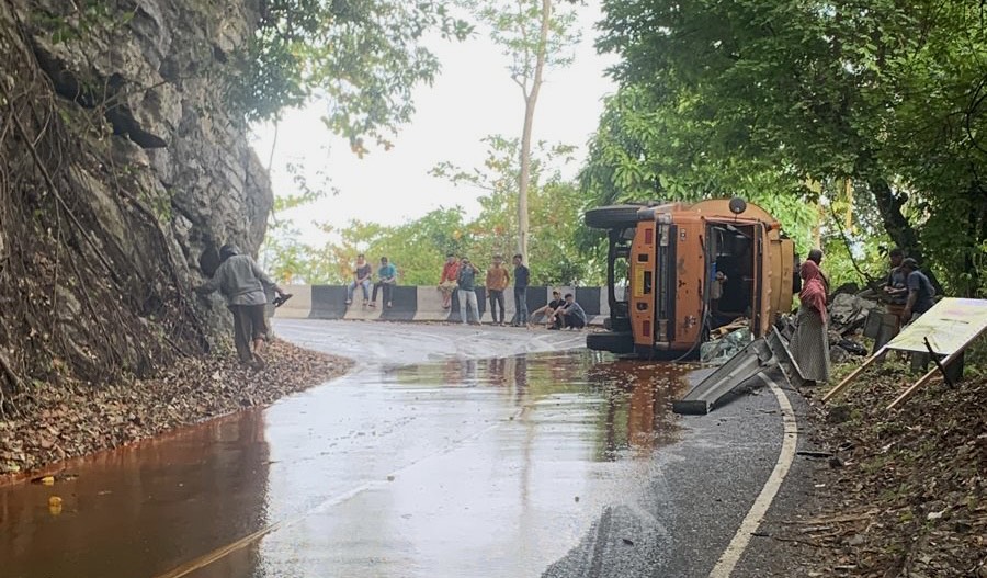 Sebelumnya, mobil truk tangki bermuatan CPO terbalik di kawasan Gunung Geureute, Aceh Besar. Akibatnya jalur lintas kawasan barat Aceh ditutup sementara.