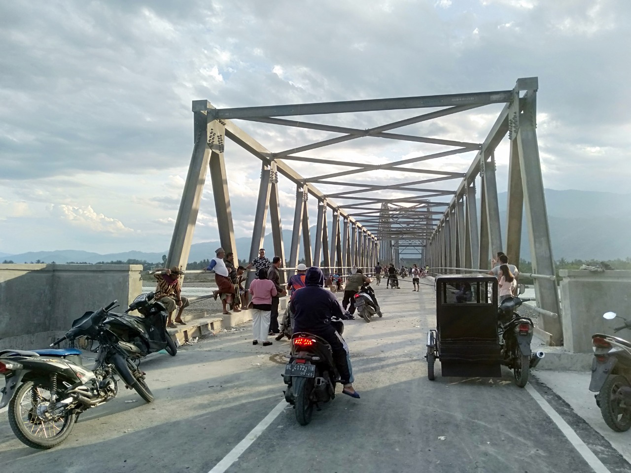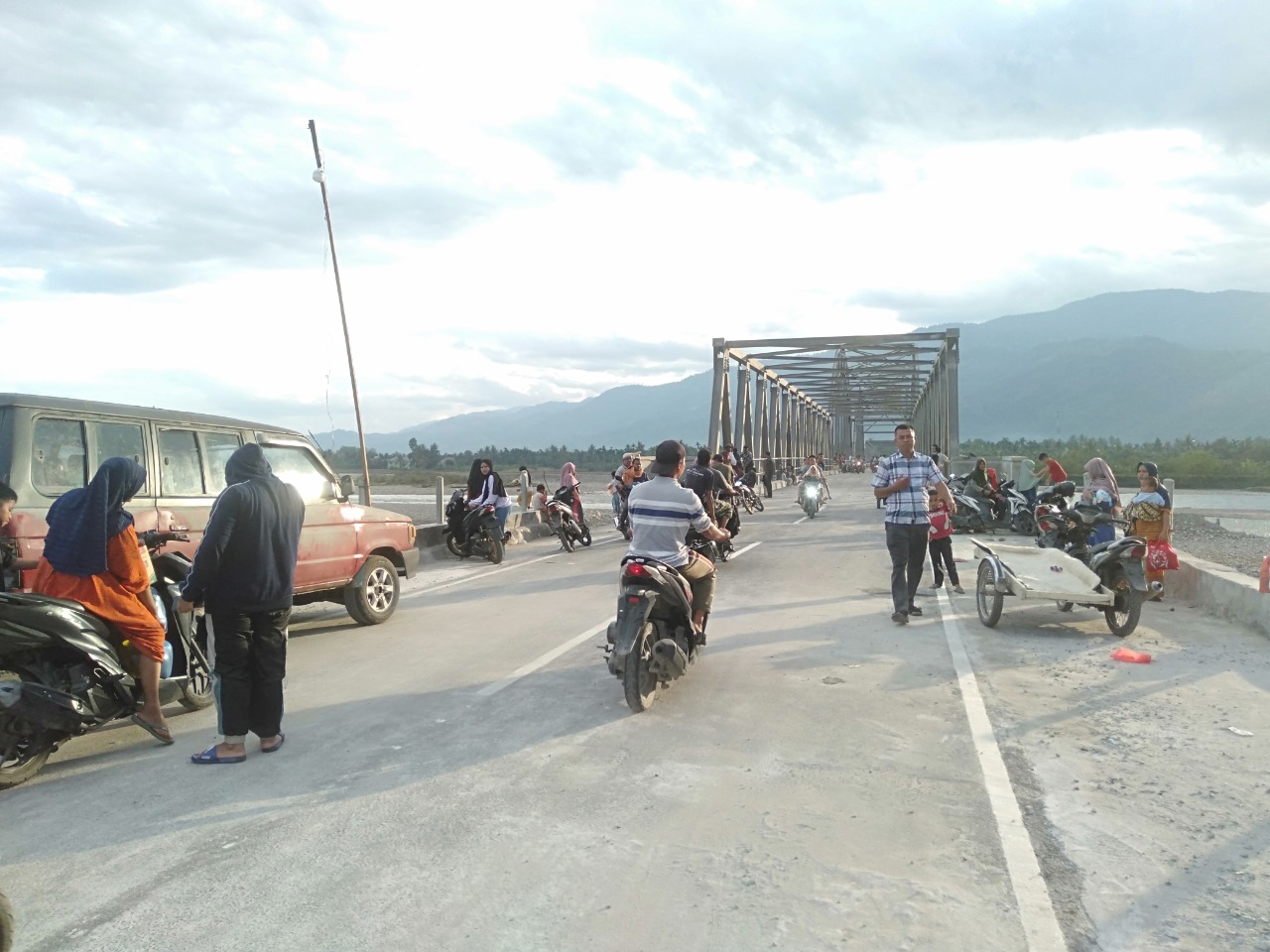 Amatan HabaAceh.id, Minggu 1 Januari 2023, jembatan rangka baja tersebut mendadak ramai dikunjungi masyarakat meski baru bisa dilintasi kenderaan roda dua. Sementara kendaraan roda empat belum bisa melewati karena belum diresmikan dan masih terpasang pagar pembatas.