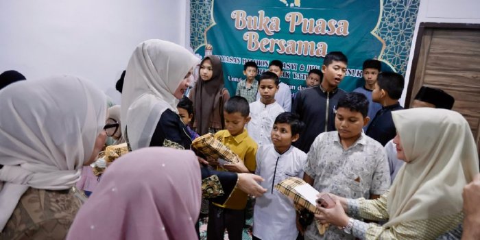 Foto: Humas AcehBanda Aceh – Ketua Tim Penggerak PKK Aceh, Marlina Muzakir, menyalurkan santunan kepada anak-anak yatim dan fakir miskin di Yayasan Halimoen Al Asyi, Lampaseh, Banda Aceh, pada Kamis (13/3). Kegiatan ini dilakukan sebagai wujud kepedulian dan dukungan terhadap anak-anak yang membutuhkan, terutama di bulan suci Ramadan.