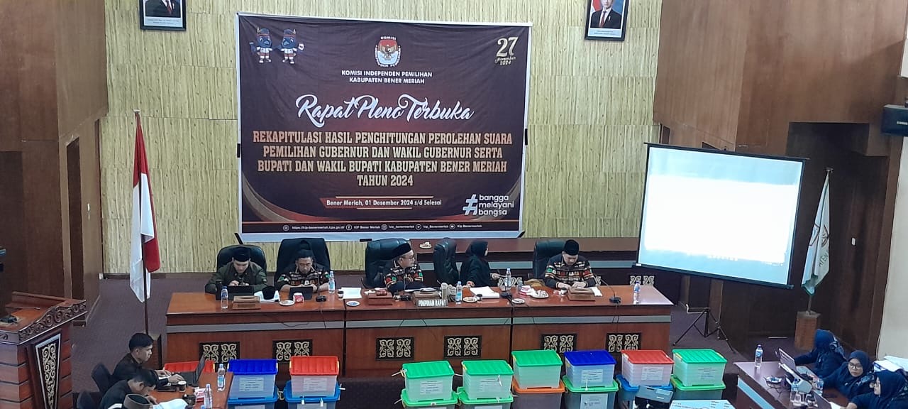 Redelong - Komisi Independen Pemilihan (KIP) Bener Meriah menetapkan pasangan calon bupati dan wakil bupati Bener Meriah nomor urut 02 Tagore Abubakar -Armia meraih suara terbanyak dalam Pemilihan Kepala Daerah (Pilkada) 2024.