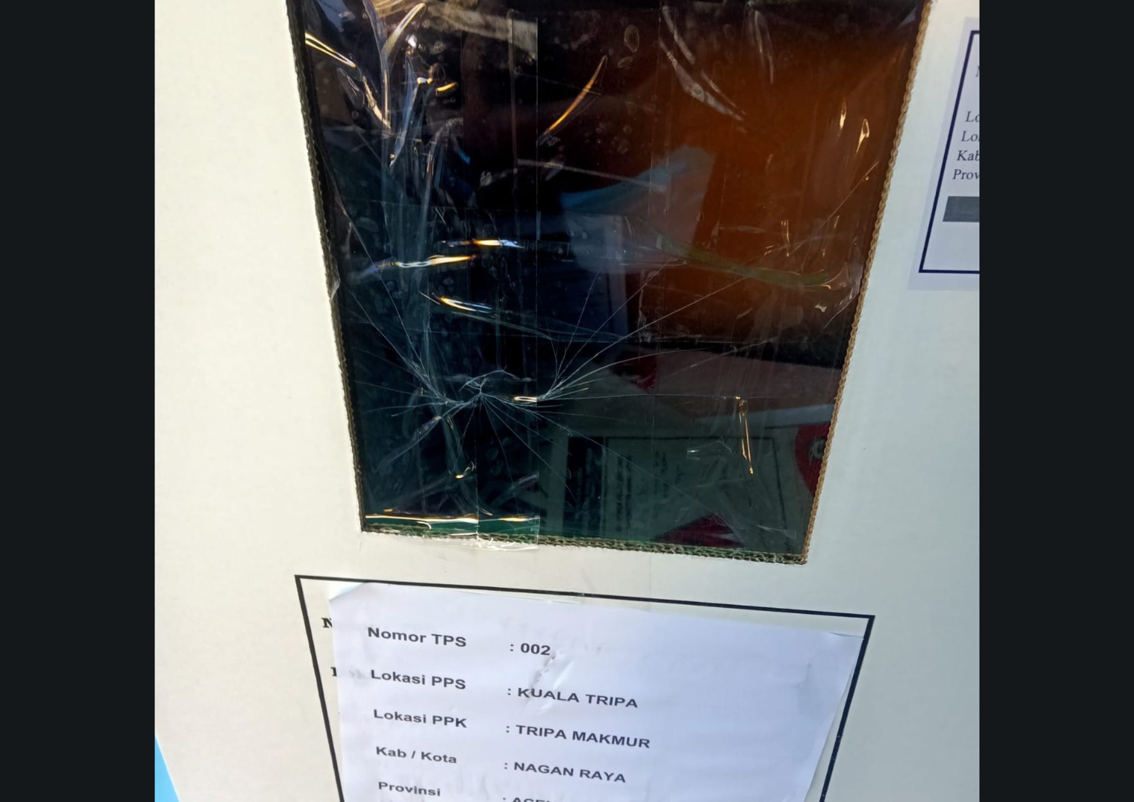 Suka Makmue – Kotak suara pemilihan calon presiden dan wakil presiden di Tempat Pemungutan Suara (TPS) Desa Kuala Tripa, Kecamatan Tripa Makmur, Nagan Raya rusak.
