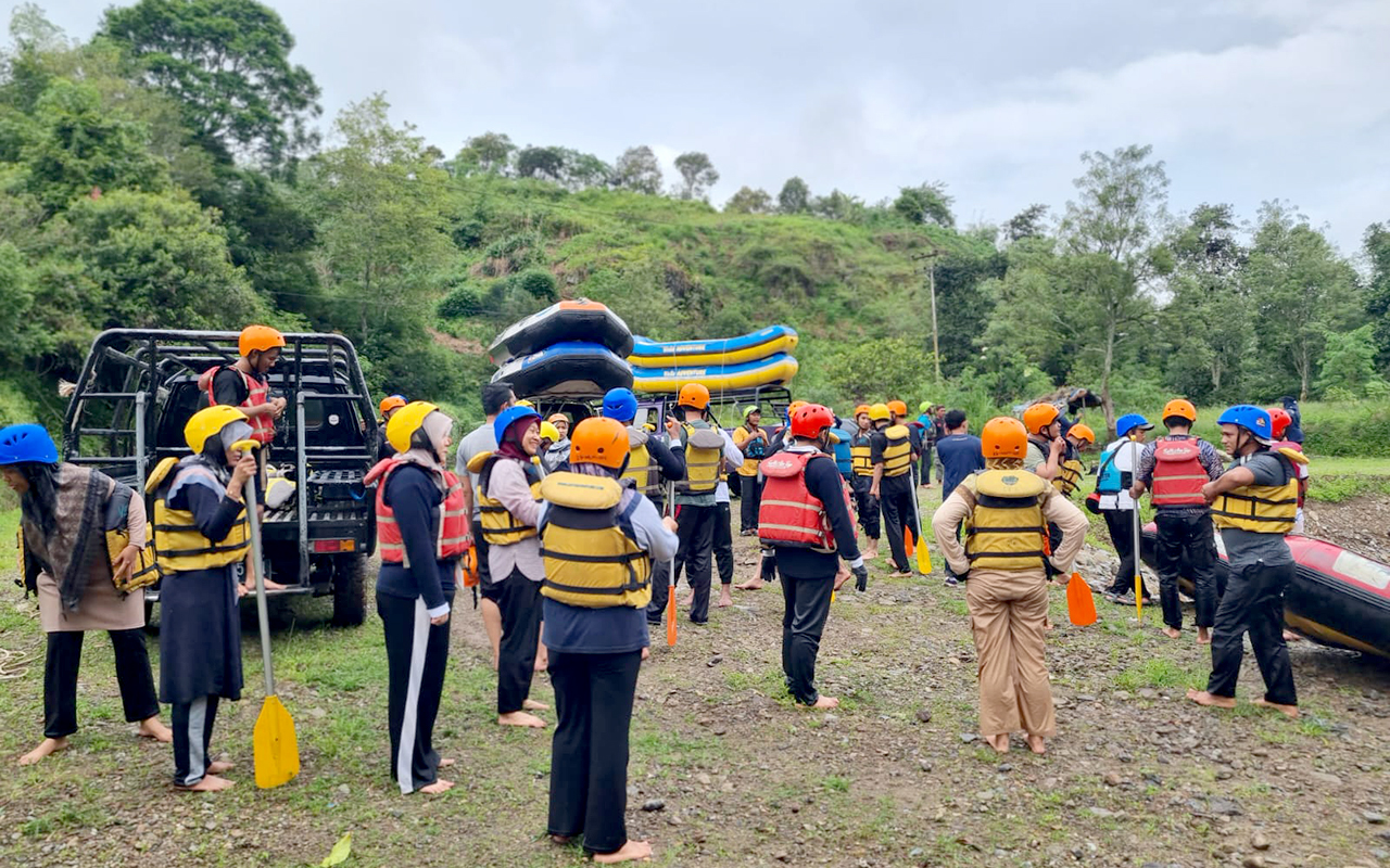 Aktivitas wisatawan di lokasi Arung Jeram Lukup Badak