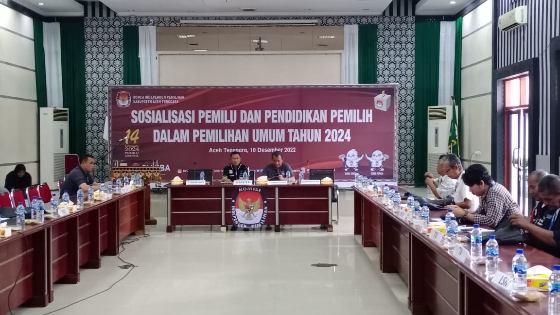 Aceh Tenggara - Komisi Independen Pemilihan (KIP) Aceh Tenggara menggelar sosialisasi tentang pendidikan pemilih dalam pemilihan umum (Pemilu) 2024. Acara yang berlangsung di Oprom (ruangan) Pemkab setempat, diikuti sejumlah Lembaga Swadaya Masyarakat dan para Jurnalis.