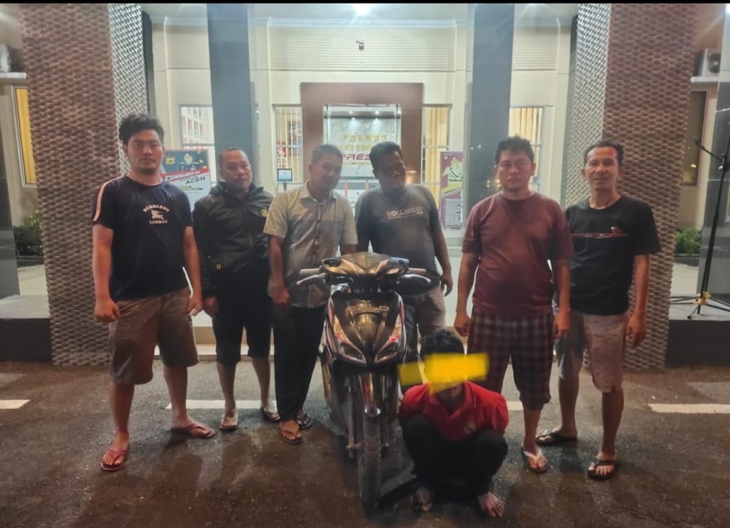 "Pelaku ditangkap saat berada di rumah saudara di Desa Semadam Kecamatan Semadam. Dalam pemeriksaan dia mengakui telah mencuri motor korban," jelas Jabir.