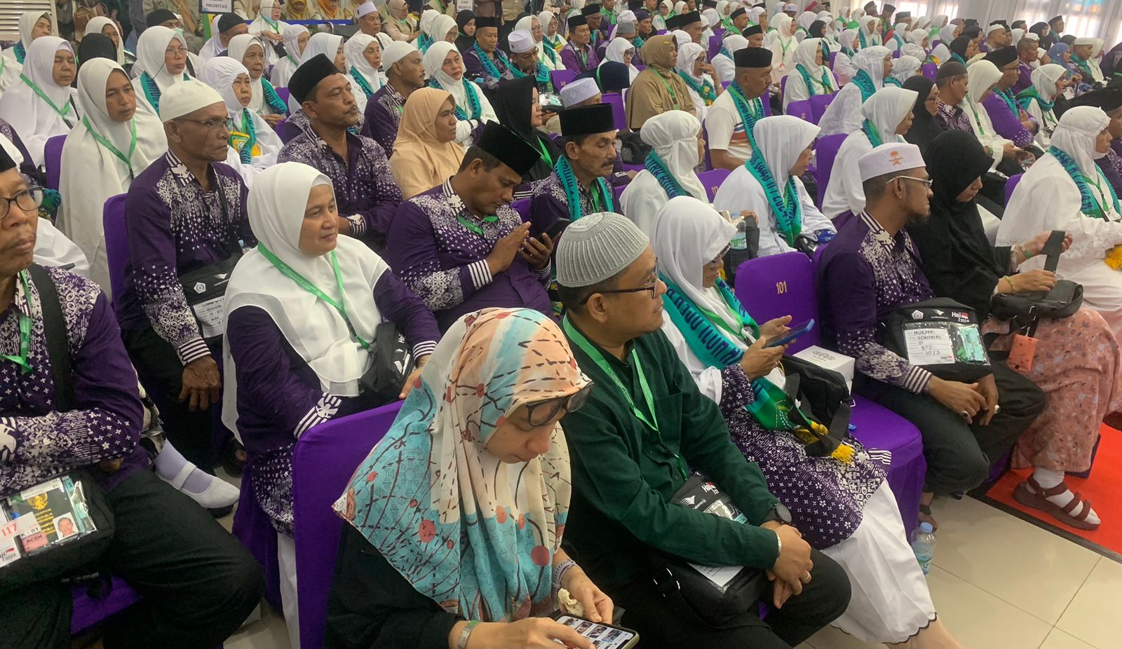 "Mohon bantuannya, petugas dan keluarga, untuk informasikan ke jemaah, untuk tidak membawa tas barang-barang ke pesawat, di luar dari yang diberikan oleh pihak maskapai Garuda seperti kloter 2 misalnya, masih ada yang bawa tas tambahan di atas," pungkasnya