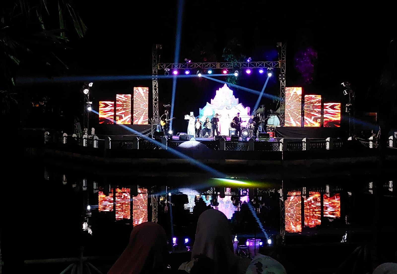 Sorotan lampu dan pantulan cahaya dari permukaaan kolam akan memandu penampilan atraksi seni di panggung. Serta akan jadi menjadi suguhan yang indah untuk pengunjung.
