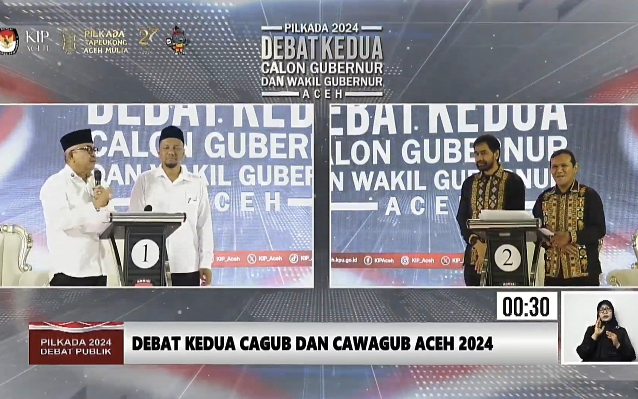Foto: Tangkapan layar KIP AcehBanda Aceh - Isu tentang kesehatan menjadi pembahasan dalam debat kedua calon Gubernur dan Wakil Gubernur Aceh. Kedua pasangan calon saling memberikan pandangannya dalam peningkatan kualitas pelayanan kesehatan.