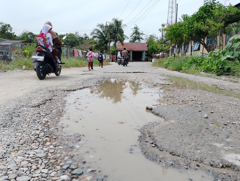 Foto: Julida Fisma/HabaAceh.idBlangpidie - Dinas Pekerjaan Umum dan perumahan Rakyat (PUPR) Aceh Barat Daya (Abdya), akan melakukan penambalan lubang jalan antar Gampong di Seuneulop, Kecamatan Manggeng.