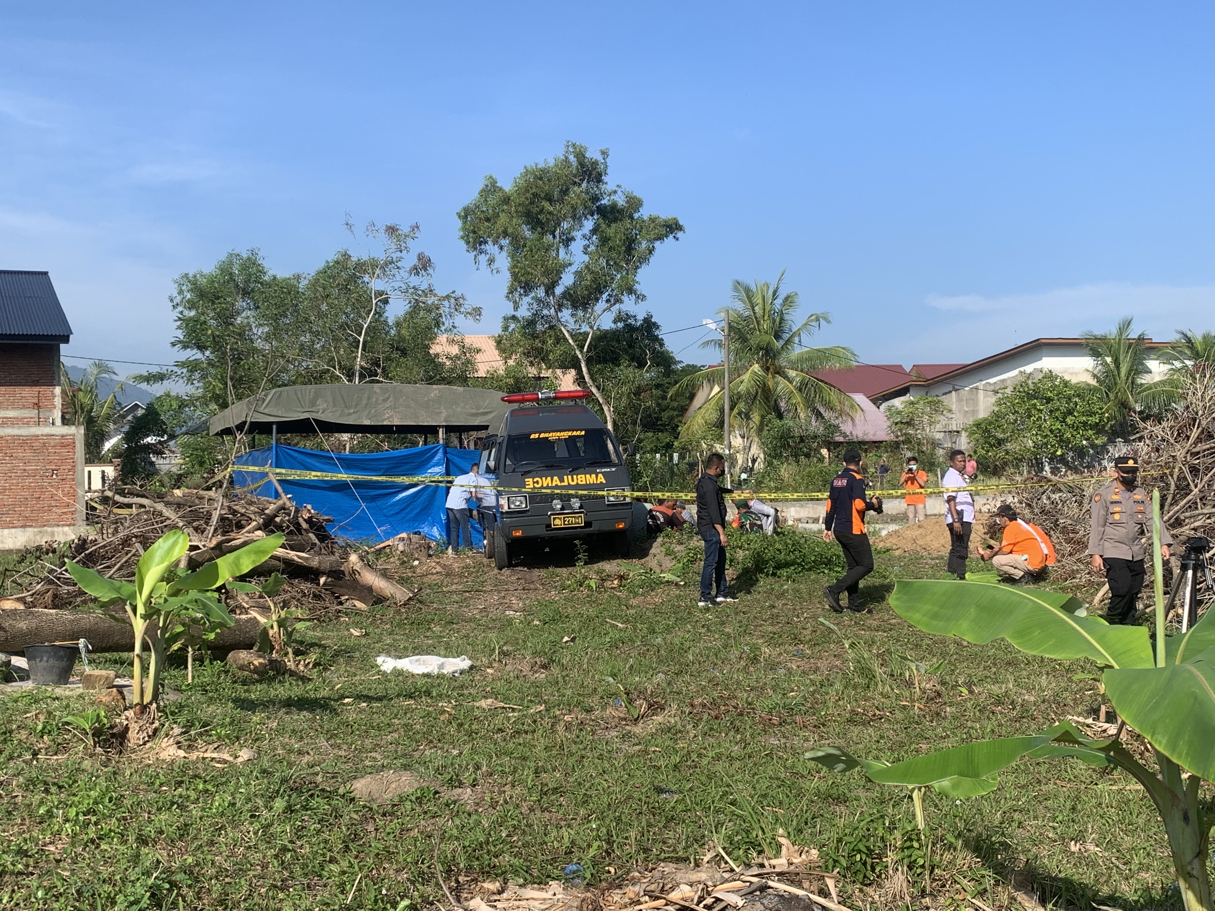 Proses ekshumasi atau penggalian makam DY (39) di Tempat Pemakaman Umum (TPU) Gampong Baroe, Kecamatan Meuraxa, Banda Aceh, Rabu (4/1).