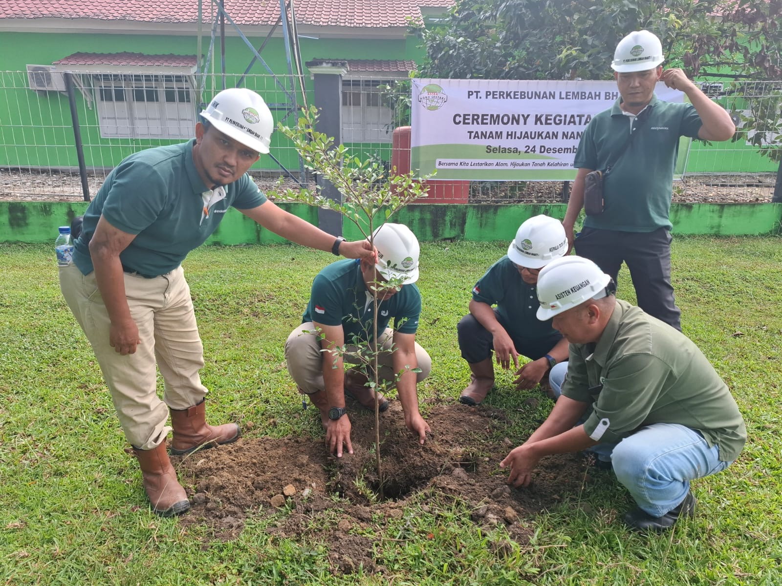 PT. PLB Aceh Singkil saat melakukan penanaman pohon di sekitar kantor, di Desa Telaga Bakti, Kecamatan Singkil Utara, Aceh Singkil, Selasa (24/12).