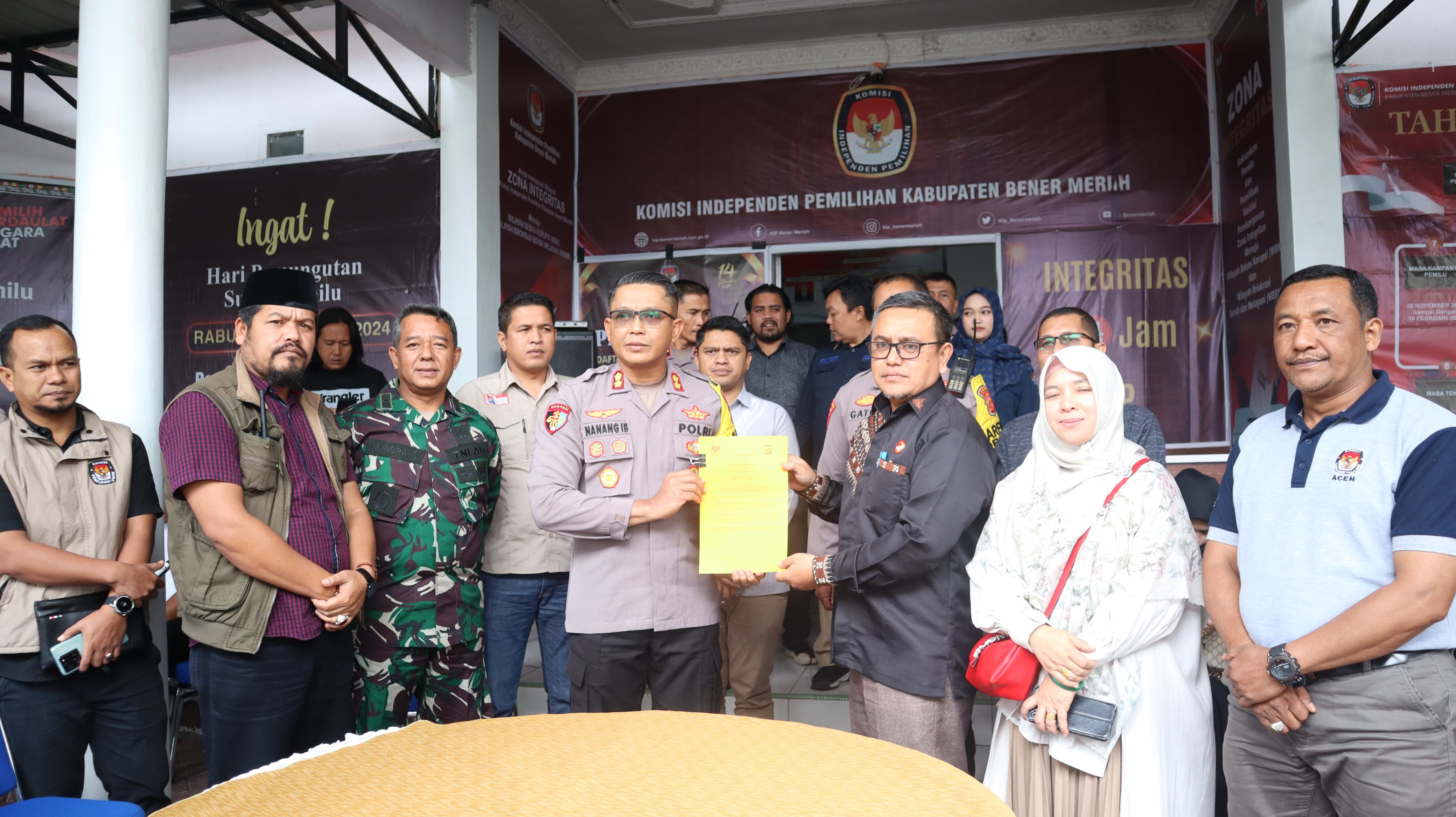 Kapolres Bener Meraih dan KIP menandatangi MoU sinergitas menjaga keamanan Pemilu 2024, Sabtu (23/12) di halaman Kantor KIP Bener Meriah.
