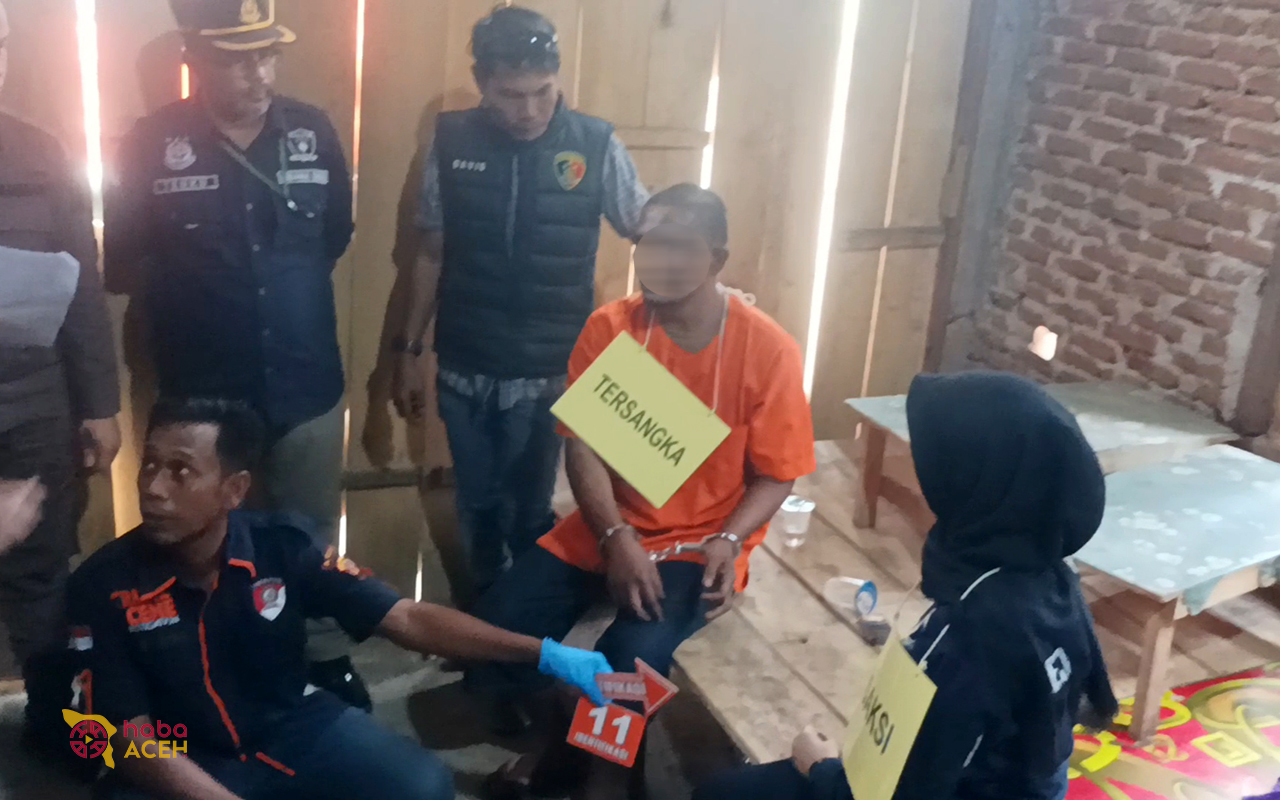 "Tersangka memerankan sendiri tiap adegan dalam rekonstruksi. Untuk saksi yang merupakan anak korban diperankan oleh orang lain," ujar Kasat Reskrim Polres Pidie, Iptu Rangga Setyadi.