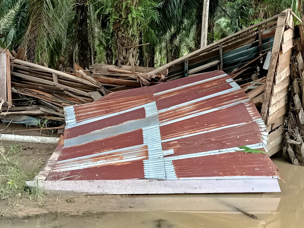 Aceh Utara - Banjir melanda Kecamatan Langkahan, Aceh Utara pada 21 Januari 2023 mengakibatkan puluhan rumah warga di Gampong Leubok Pusaka mengalami rusak berat dan hanyut terbawa arus air.