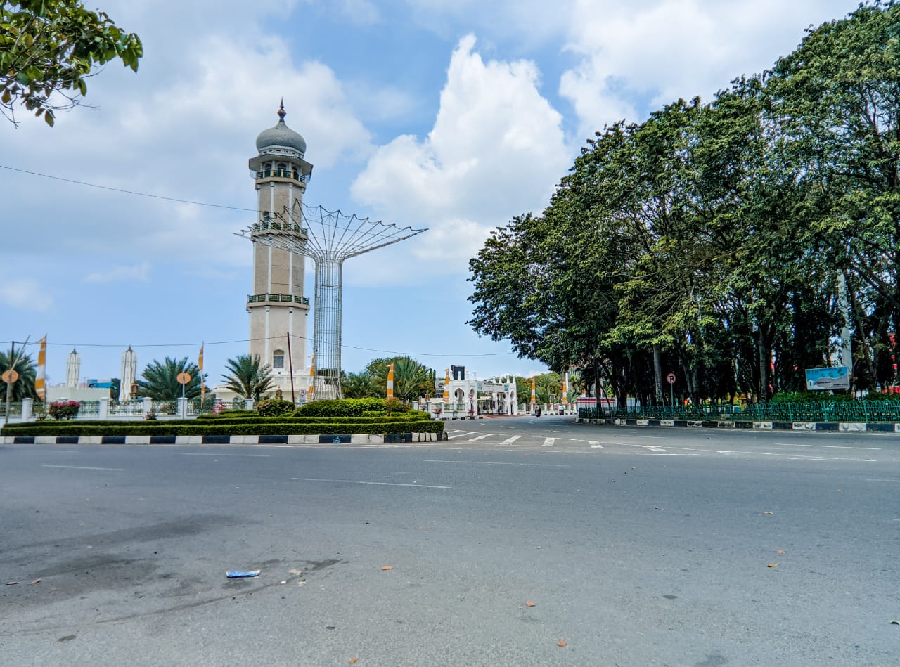 Pantauan HabaAceh.id hingga pukul 14.00 WIB, jalanan di depan Masjid Raya Baiturrahman Banda Aceh terlihat lengang dari kendaraan bermotor yang biasa memadati jalanan ibu kota tersebut.