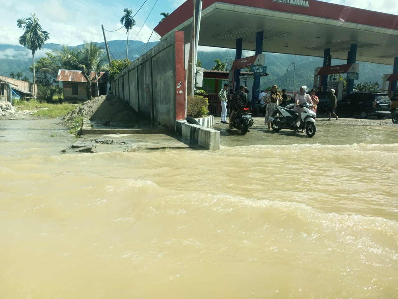 Akibatnya, air sungai meluap ke pemukiman warga hingga jalan nasional Aceh Tenggara - Sumatera Utara (Sumut).