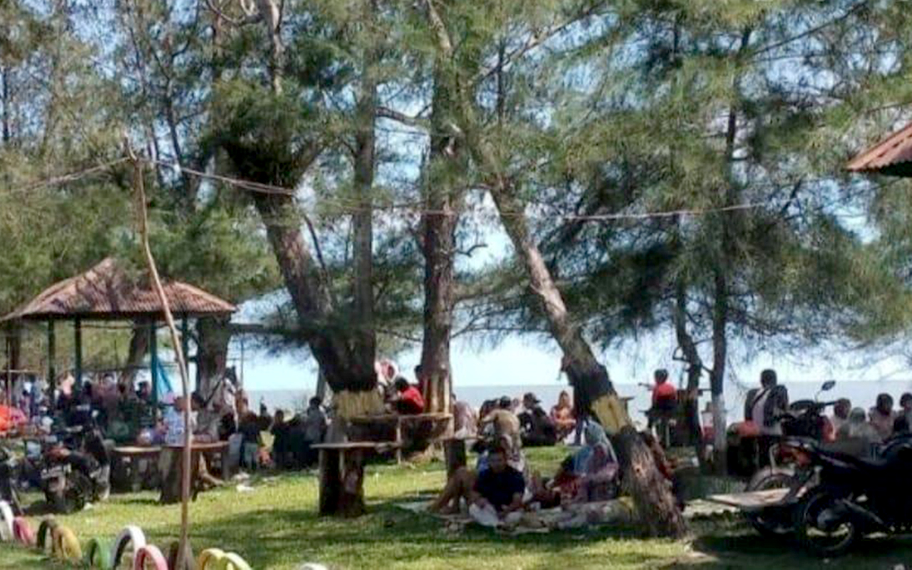 Foto: Ahmad Saidi/HabaAceh.idSingkil - Destinasi wisata Pantai Teluk Bayu, Desa Kayu Menang, Kecamatan Kuala Baru, Kabupaten Aceh Singkil, masih menjadi primadona bagi warga dan wisatawan luar untuk berkunjung saat libur Lebaran Idul Fitri tahun 2024. Ratusan warga dari Sumatra Utara, Subulussalam dan juga Aceh Singkil, terlihat tumpah ruah menghabiskan waktu berwisata di sepanjang pantai Teluk Bayu.