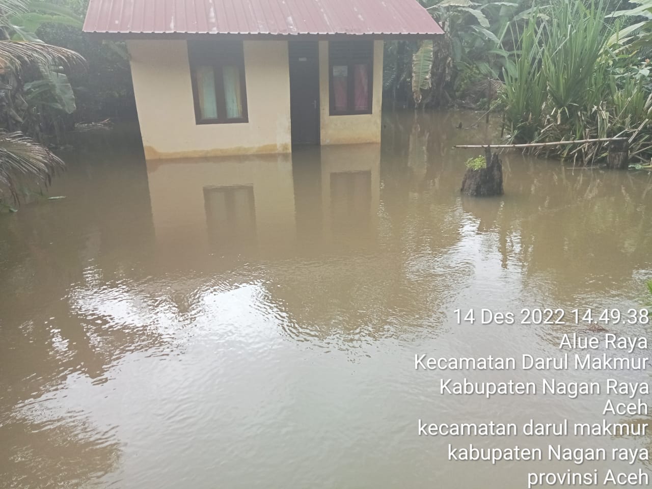 Nagan Raya - Enam gampong di Kecamatan Darul Makmur, Kabupaten Nagan Raya terdampak banjir pada Rabu (14/12). Banjir dipicu curah hujan dengan intensitas tingi yang mengguyur wilayah kabupaten setempat dalam beberapa hari terakhir.