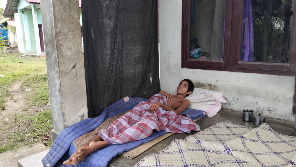 Pidie Jaya - Seorang remaja di Desa Jurong Teungoh, Kecamatan Jangka Buya, Pidie Jaya, Saputra (21) menderita lumpuh layu sejak lima tahun lalu. Remaja yatim piatu itu membutuhkan bantuan untuk biaya berobat.