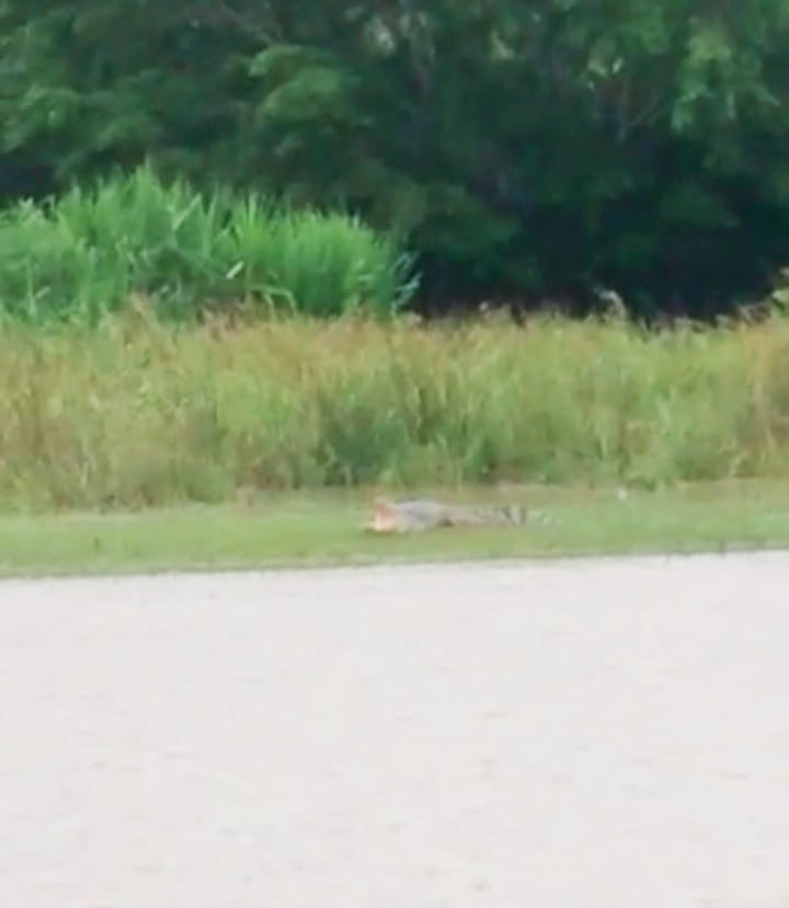 Menurutnya, posisi buaya yang berjemur berada di seberang sungai dekat dengan lapangan bola Gampong Pasi Mesjid.