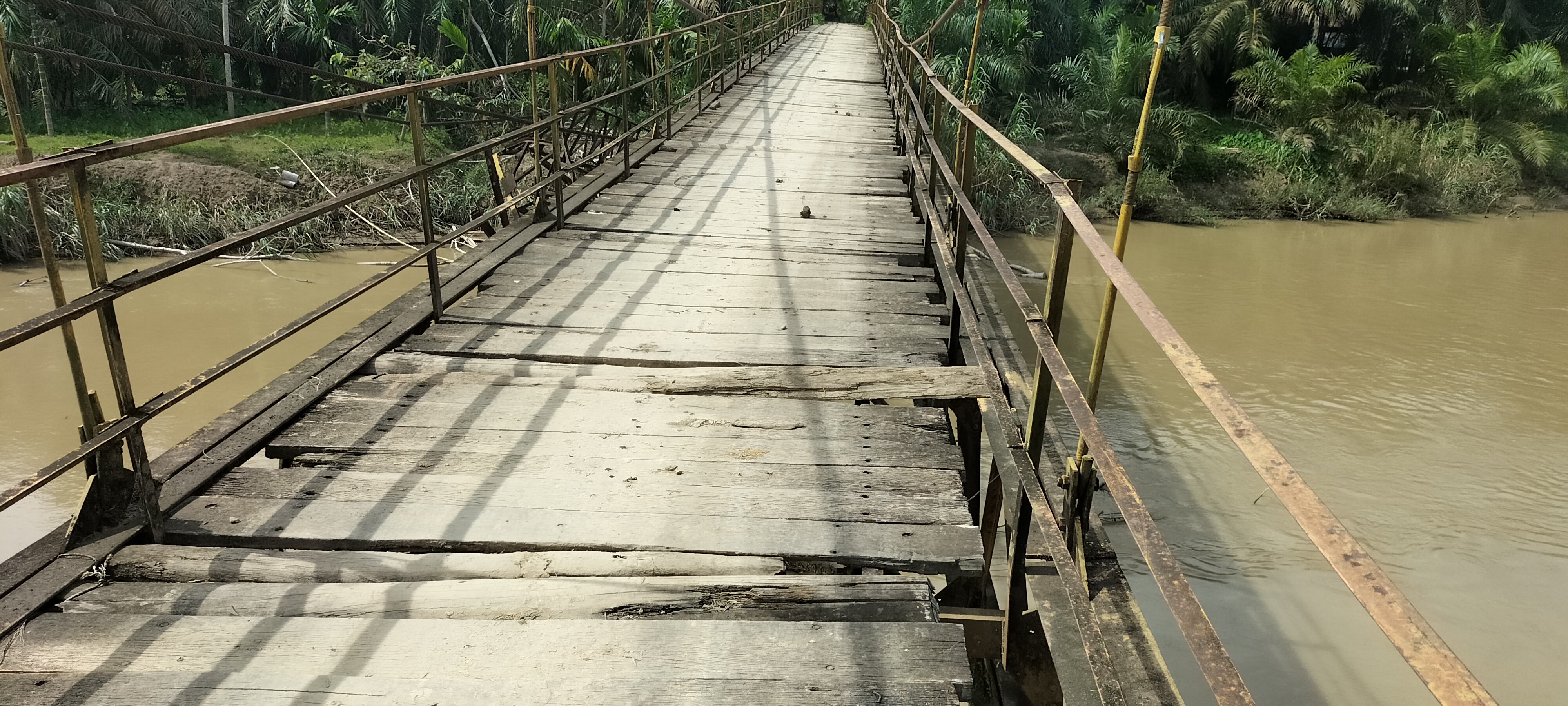 Lantainya sebagian mulai banyak yang lapuk serta bolong di sana-sini semakin menyulitkan mereka saat menyebrang.