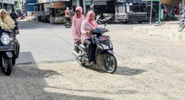 Blangpidie - Pengendara yang melintas di kawasan pusat Kota Blangpidie mengeluhkan kondisi jalan yang berlubang, warga merasa tidak nyaman dan terganggu dengan kondisi tersebut. Bahkan, ditakutkan bisa menyebabkan kecelakaan.